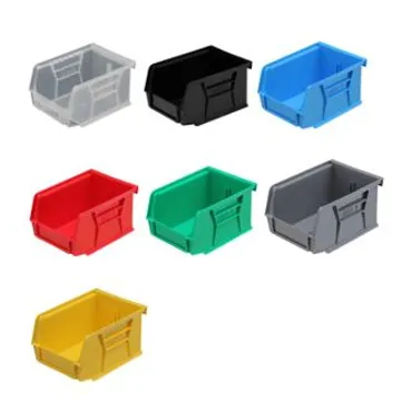 Small parts storage bin. Tough, impact and acid resistant polyprop. Available in 7 sizes